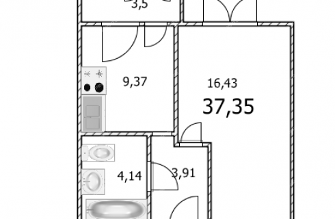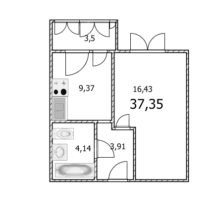 Площадь | 37,3 / 16,4 / 9,3 |