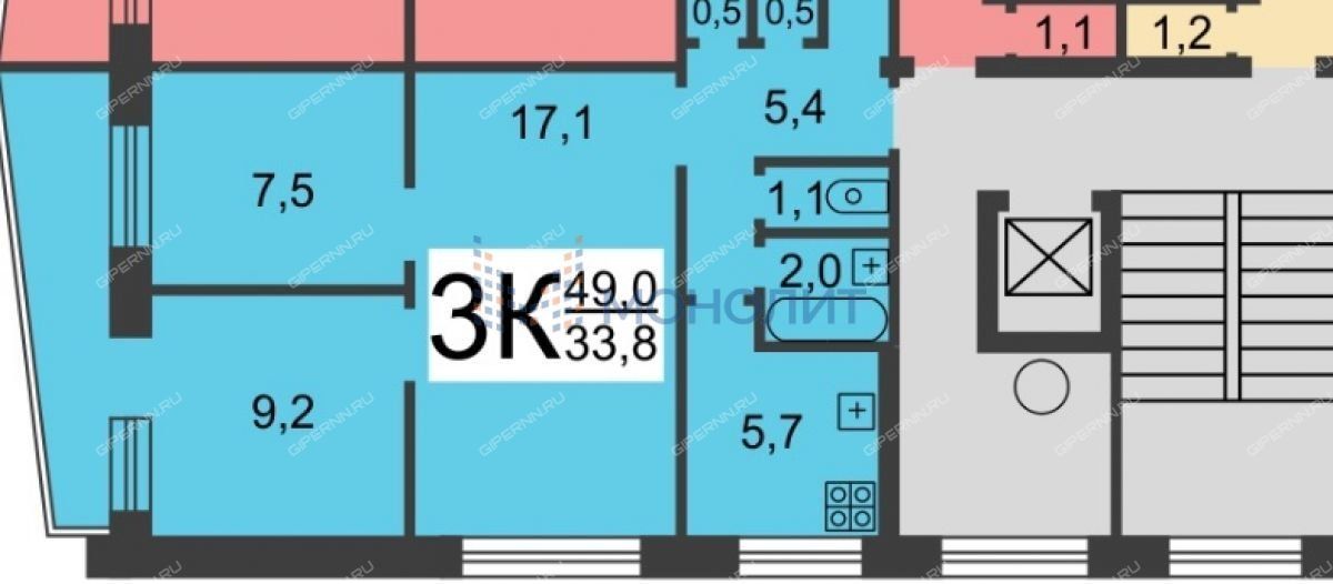 Площадь | 49 / 33,8 / 5,7 |