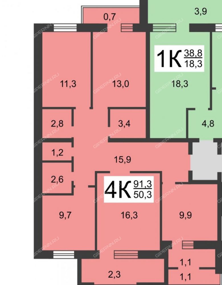 Площадь | 91,3 / 50,3 / 9,7 |