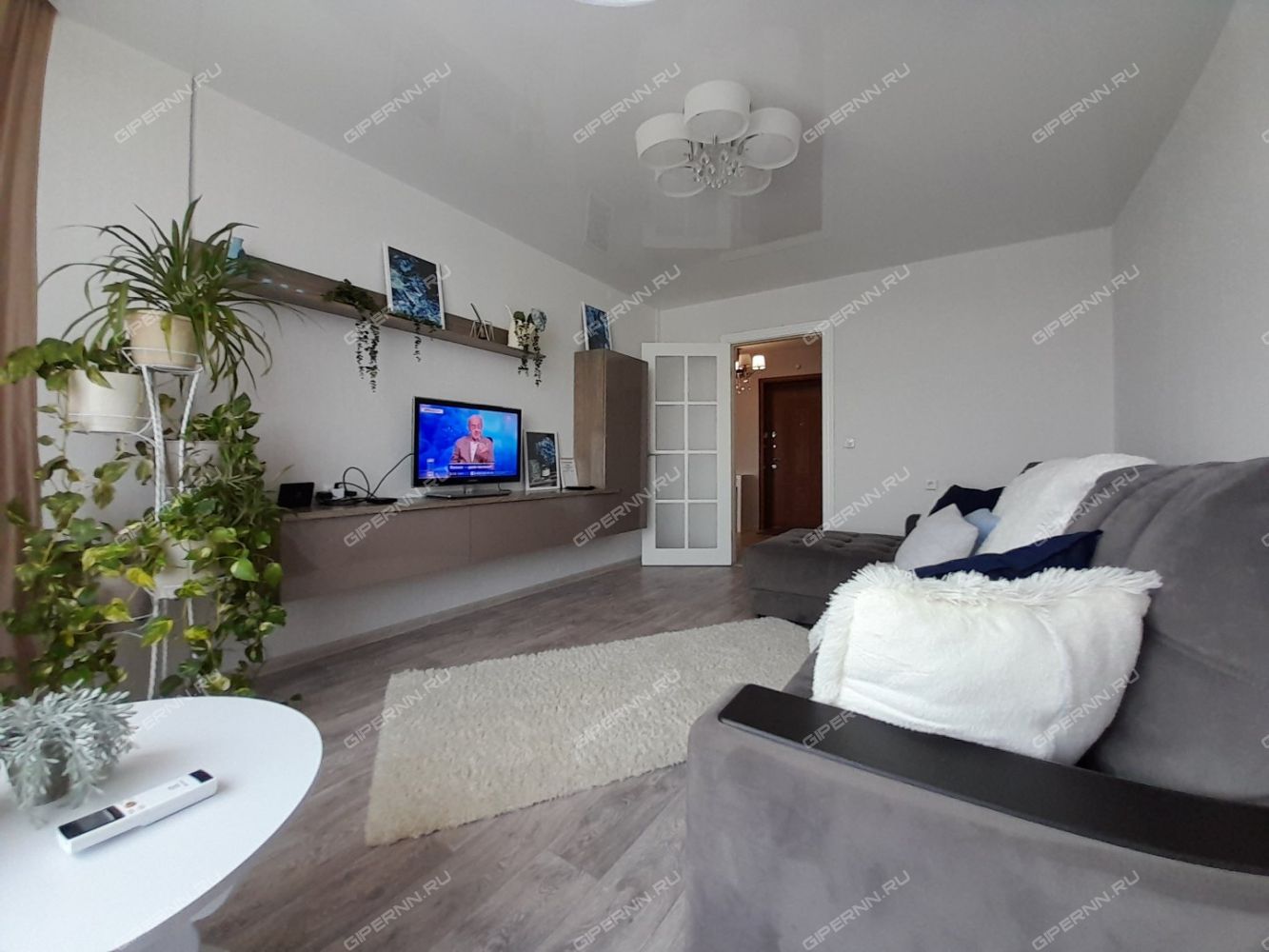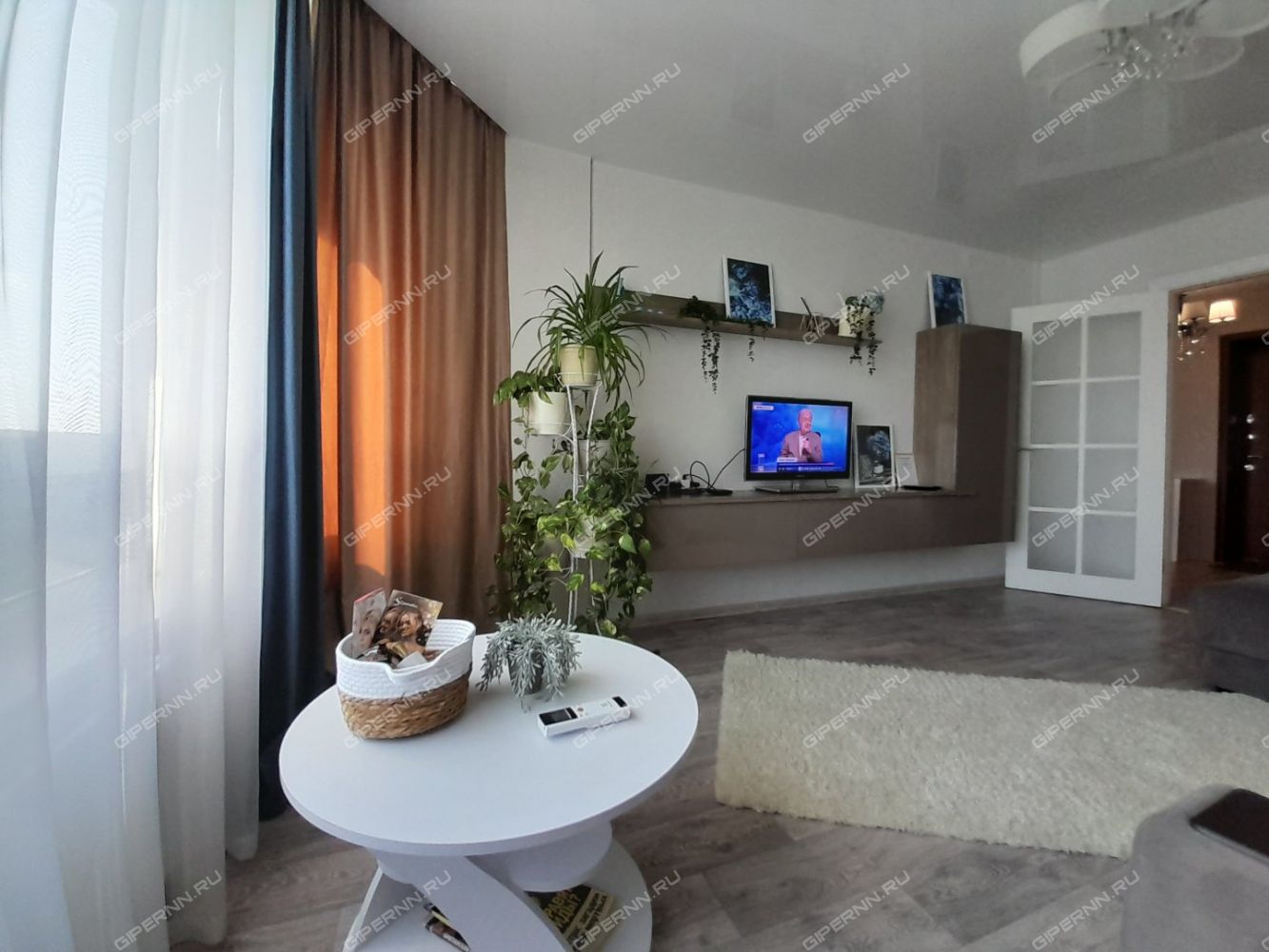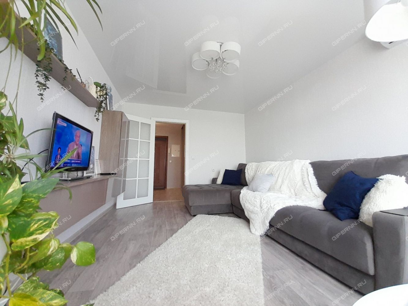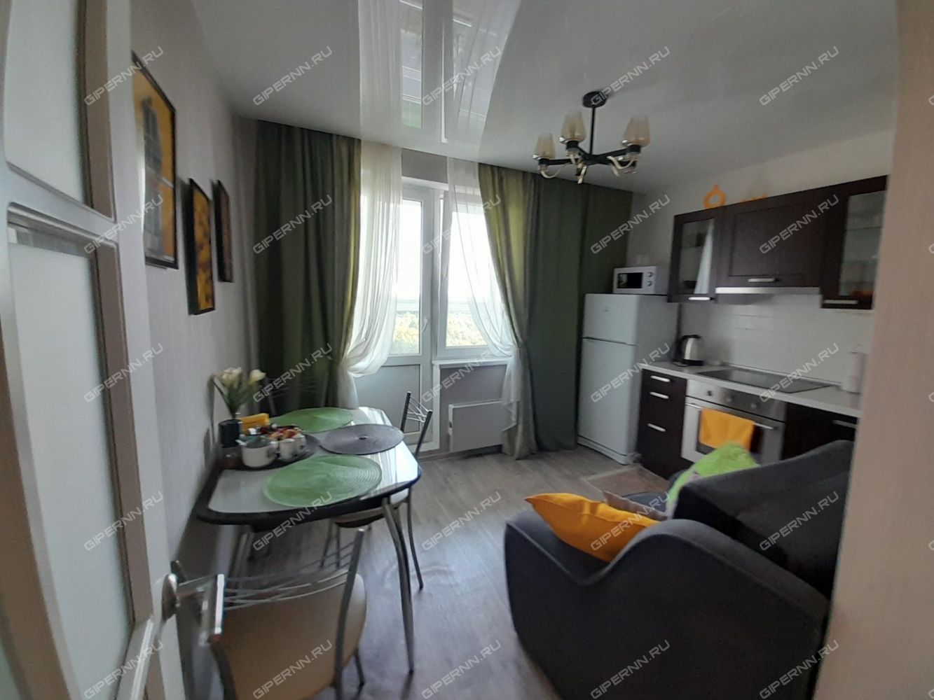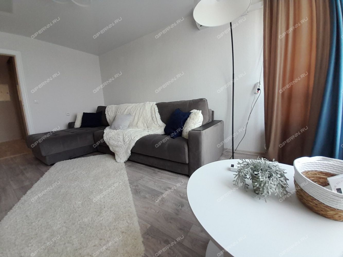 Видовая квартира с эркерными окнами до пола и большим ортопедическим диваном для ценителей комфорта.