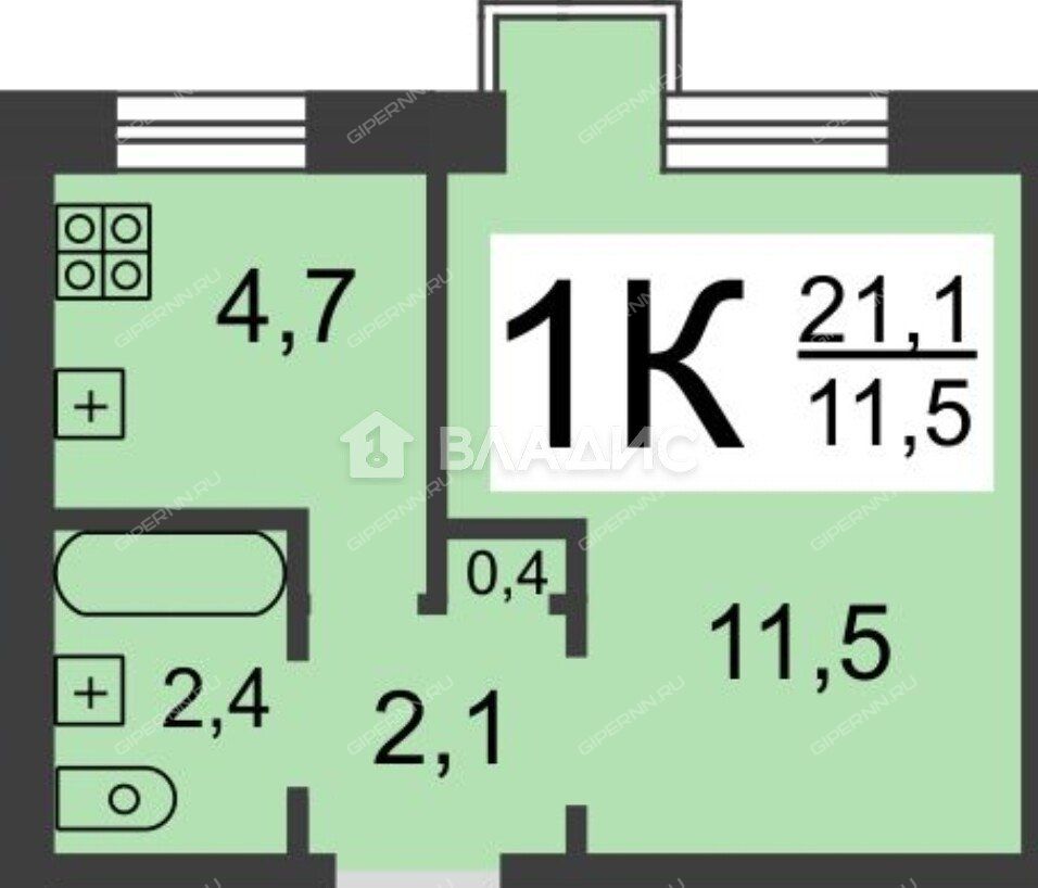 | Площадь | 21,1 / 11,5 / 4,7 |