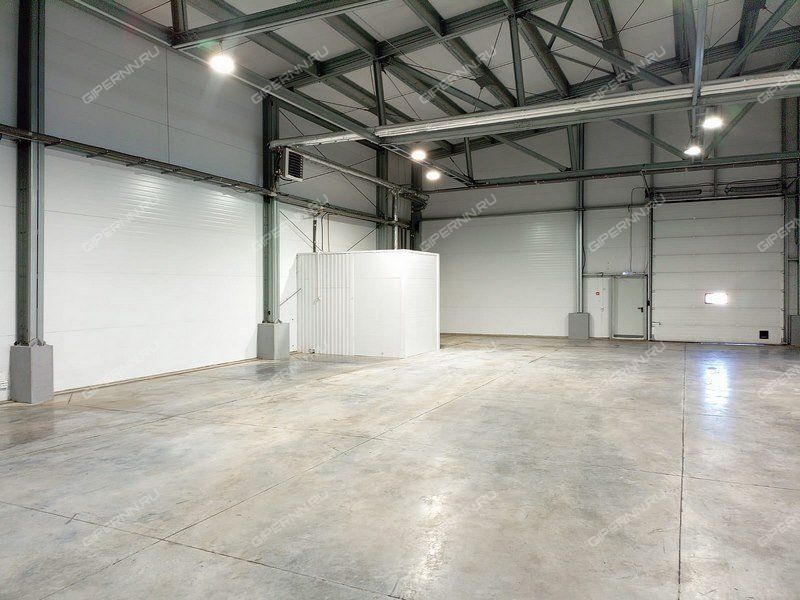 Рабочая высота 5,5 метров. В конке 9 м. Полы промышленные антипыль с нагрузкой 6 тонн на м2., Секционные ворота 3,5x4 на нулевом уровне, входная зона с офисной частью.