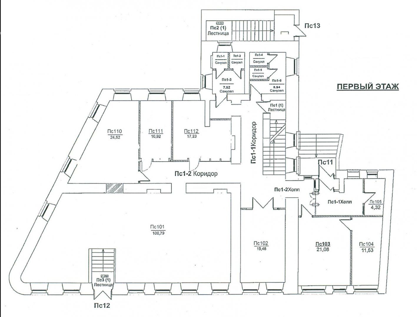 - Здание имеет три этажа (включая подвал).