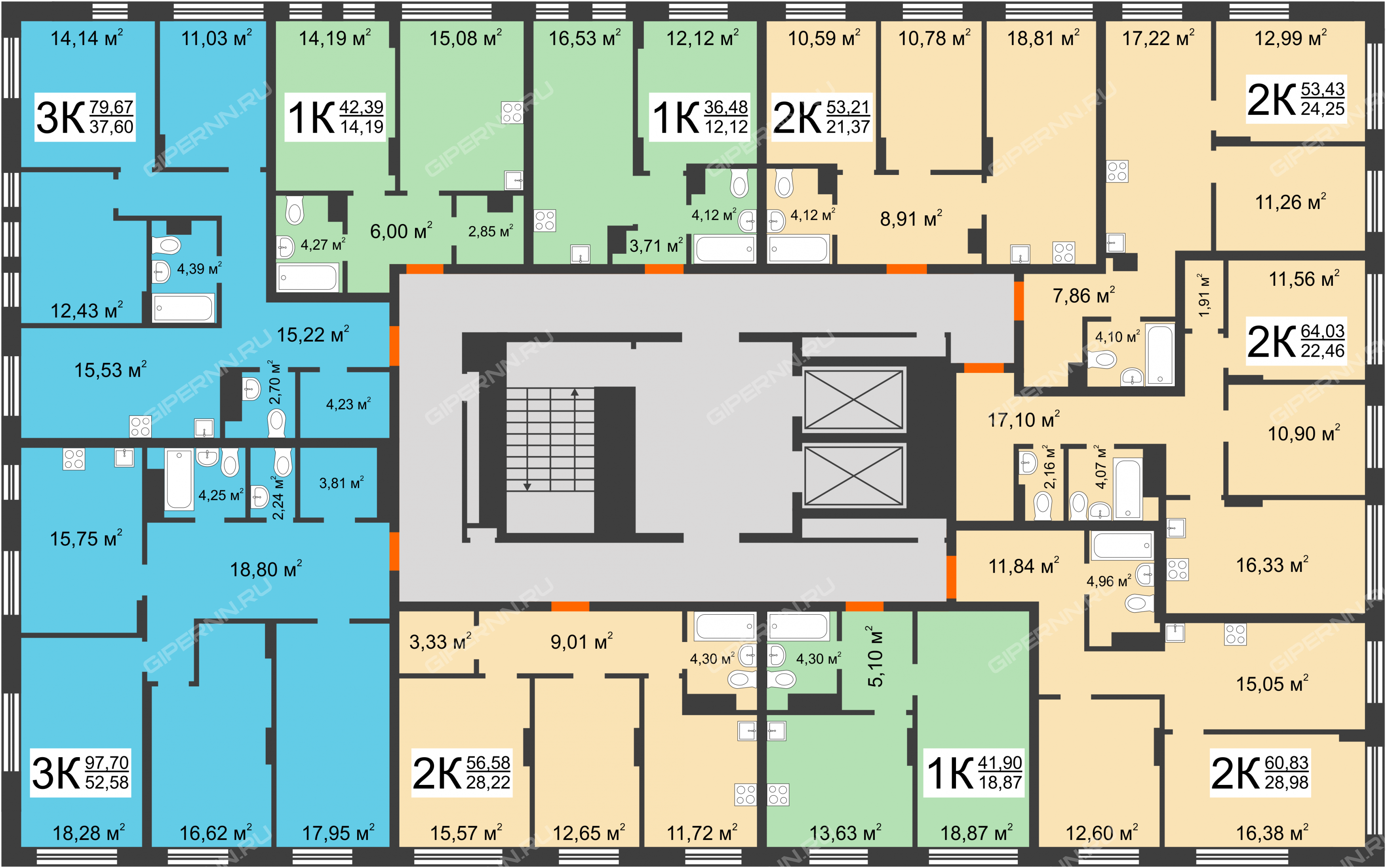 | 3-комнатная | 79,67 - 98,22 |