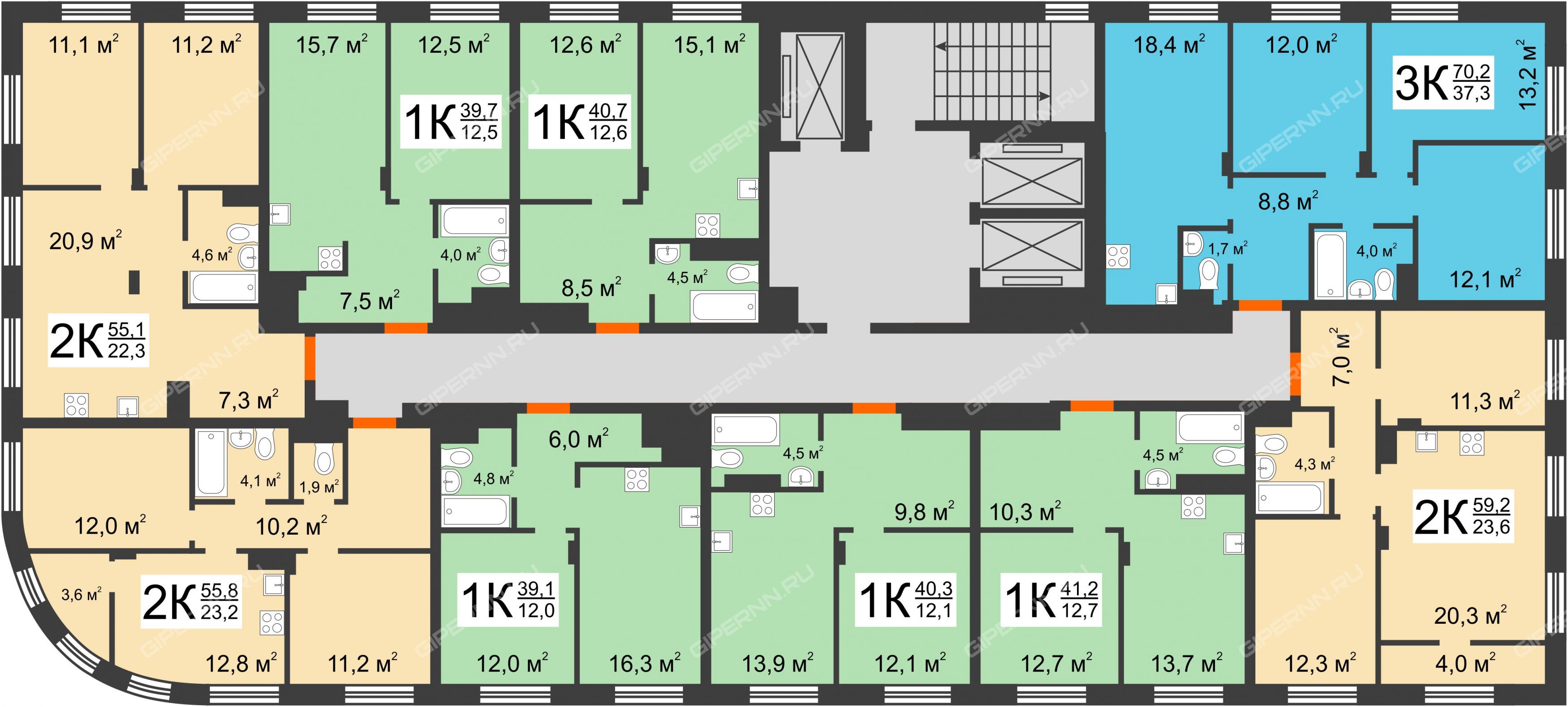 | 3-комнатная | 70 - 71 |