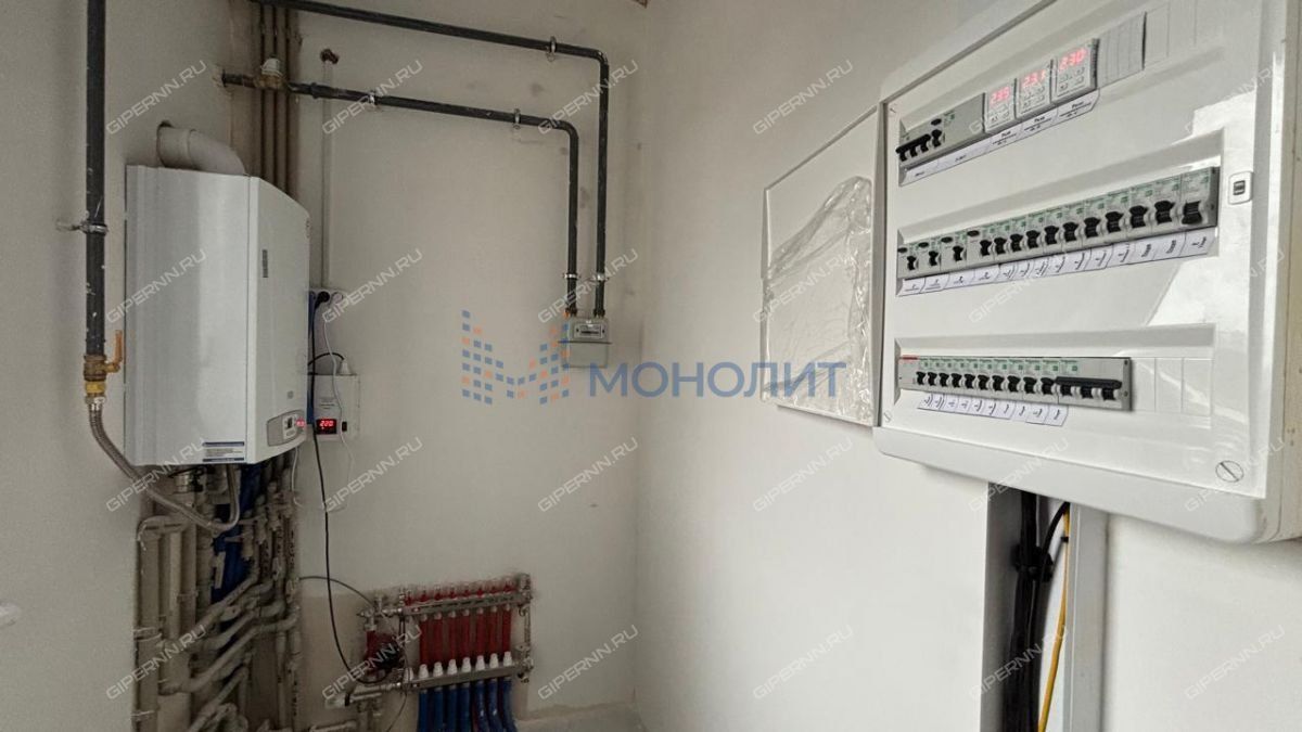 -отопление - газовый котёл, двухконтурный с закрытой камерой (ВАХI еко-4s, 24 кВт), с выносной панелью и управлением через телефон (Zоnt, расширенная версия); водяные тёплые полы по периметру 1-го этажа(кроме спальни) и в с/у 2-го этажа, выполнены из сшитого полиэтилена марки (Веrrgеr), установлены стальные панельные радиаторы (Веrrgеr);