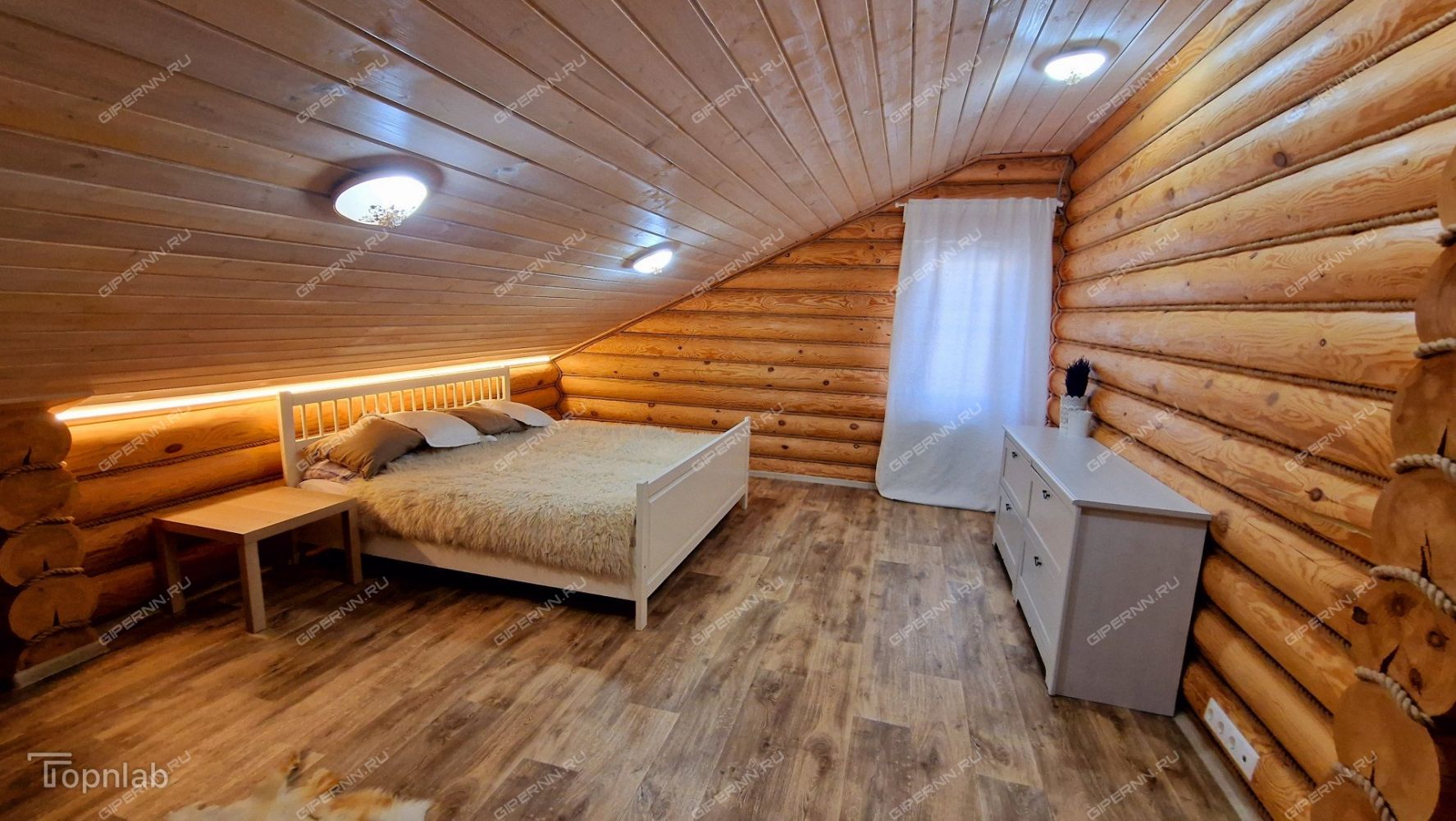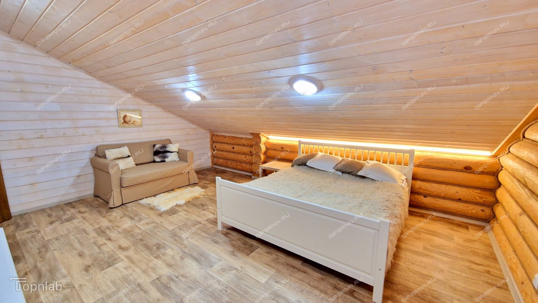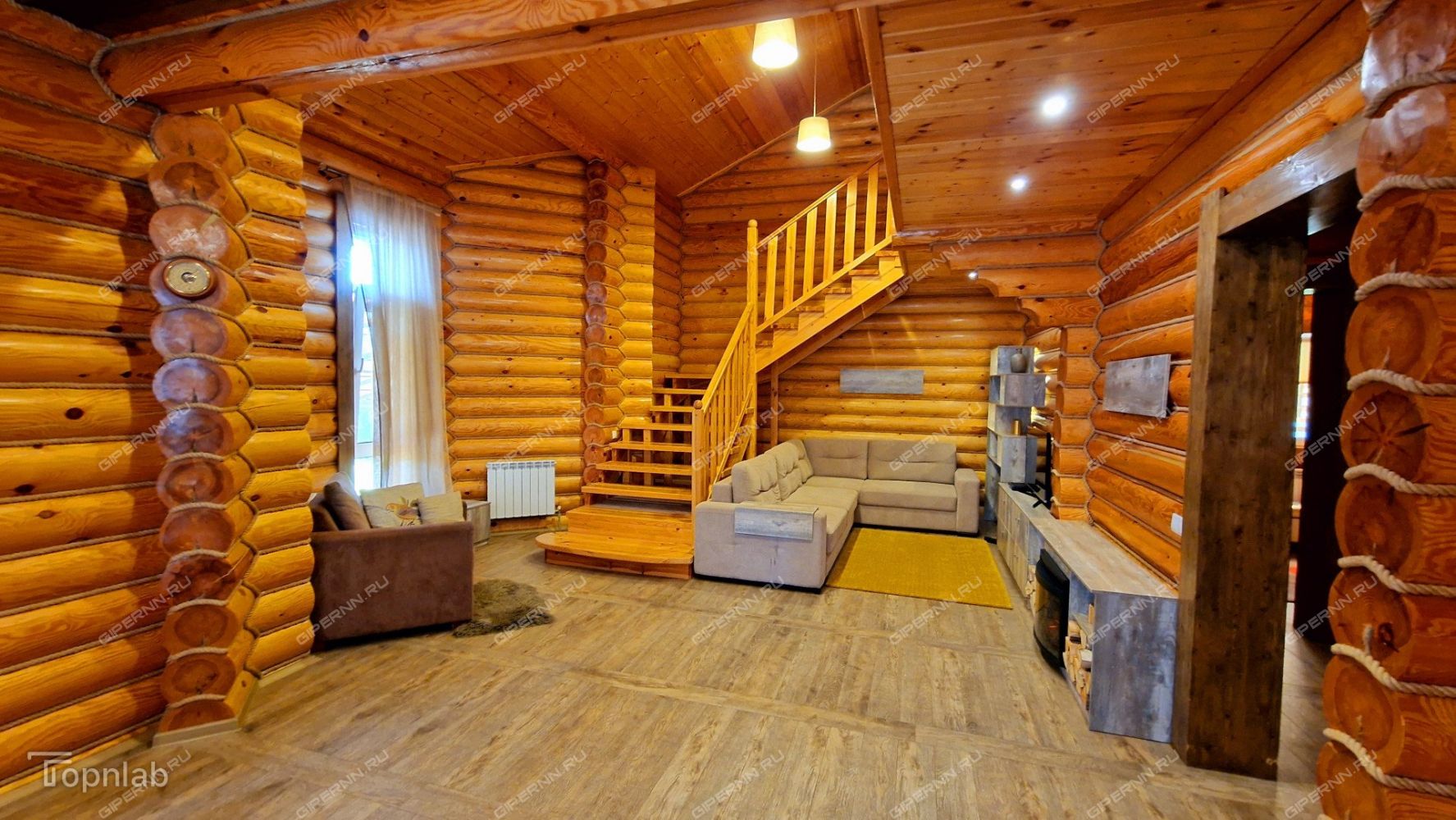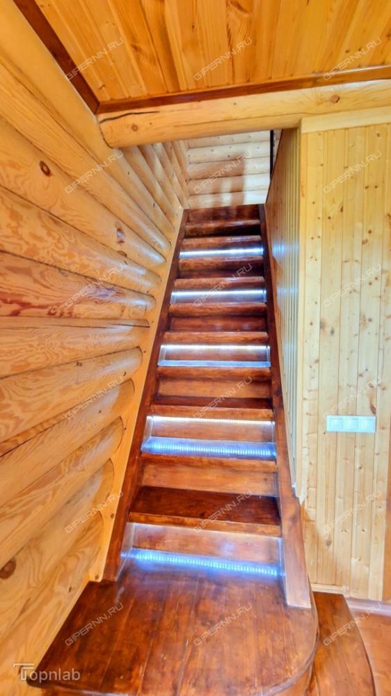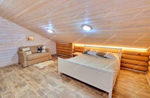 - Второй этаж: Три светлые спальни (отделка из сосны и ели). Деревянная лестница.