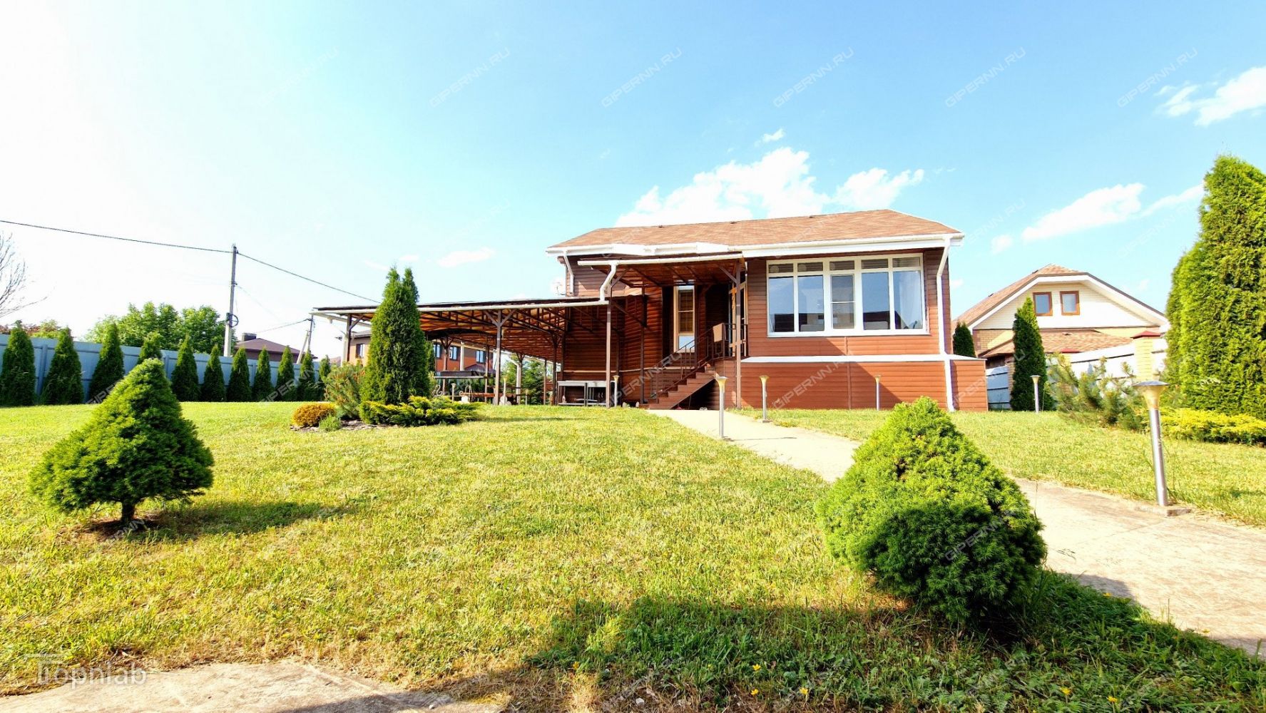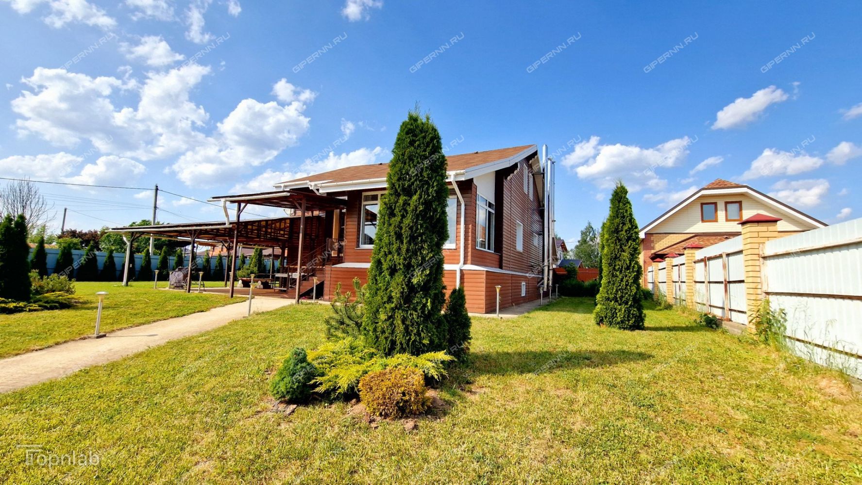 ️ Ухоженная территория: плодовые деревья, хвойные посадки, газон.