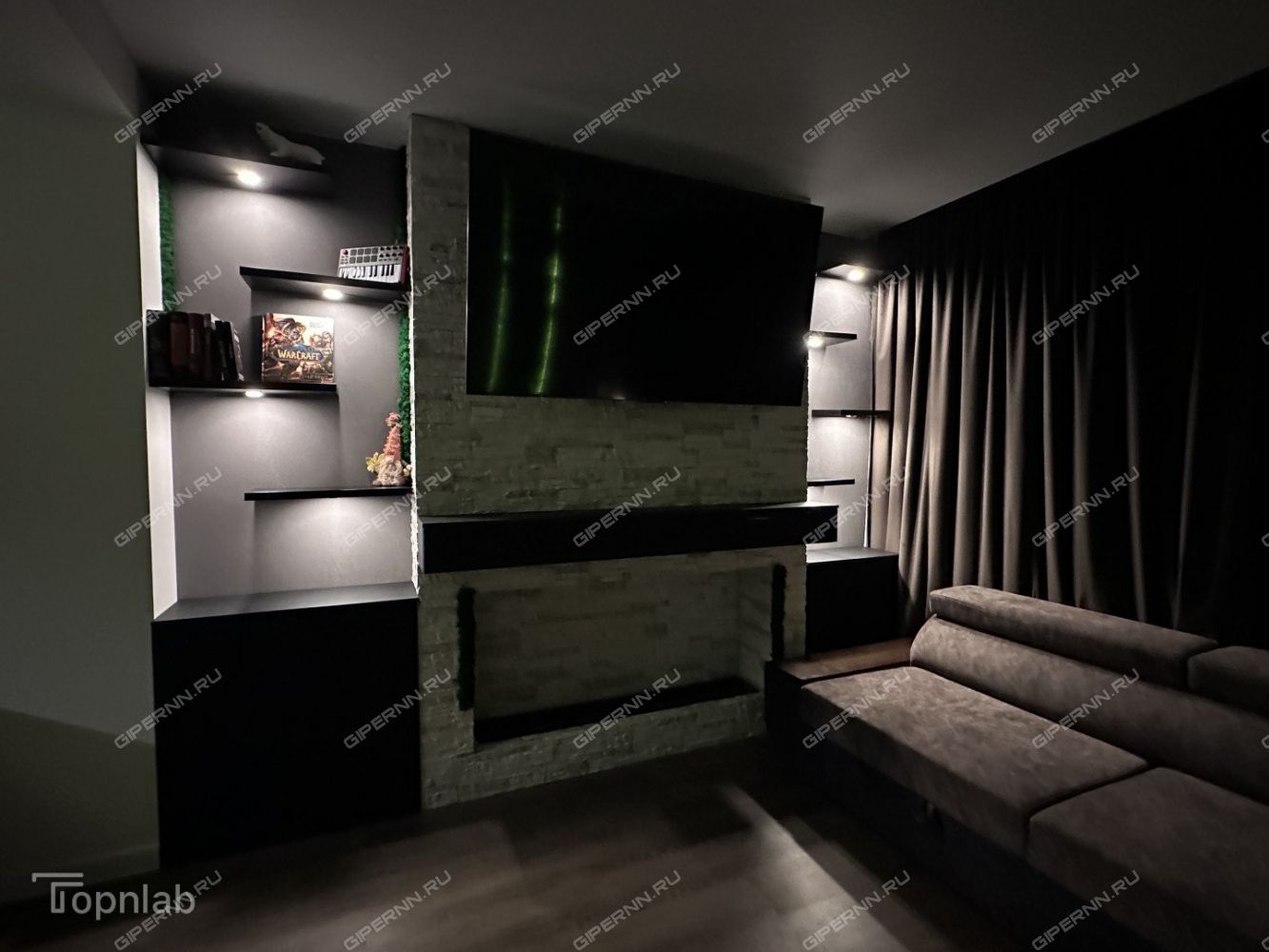 Телевизор TCL 75C745, диагональ 75; электрический камин с цветным пламенем и цифровым дисплеем;