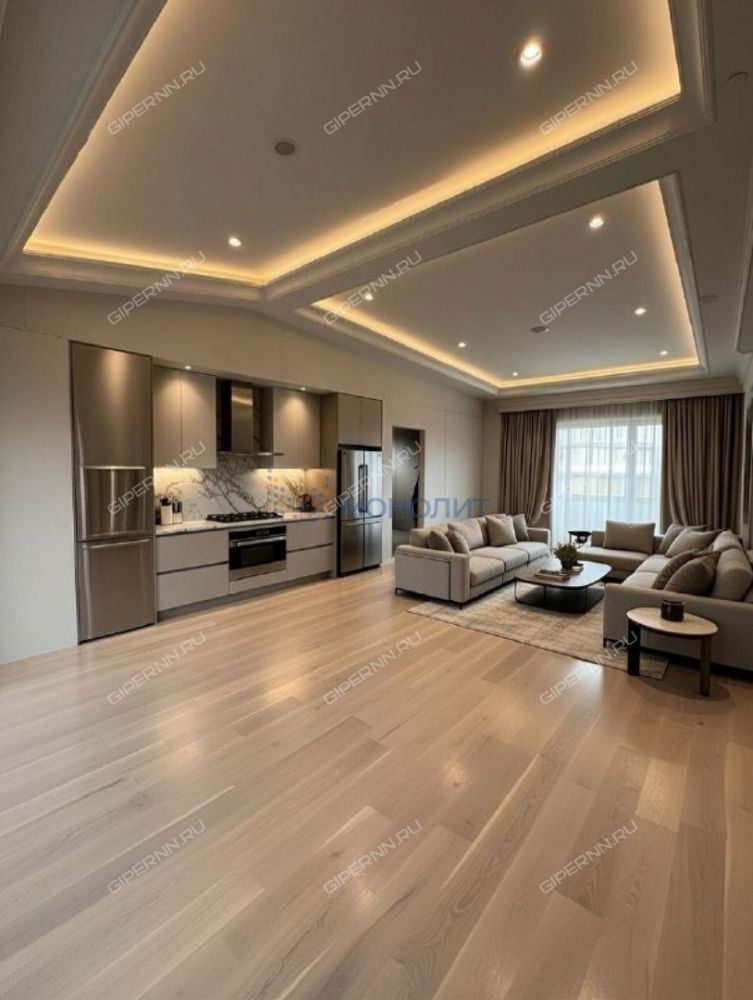 - Большая кухня-гостиная 35² м с потолками до 4,5 м