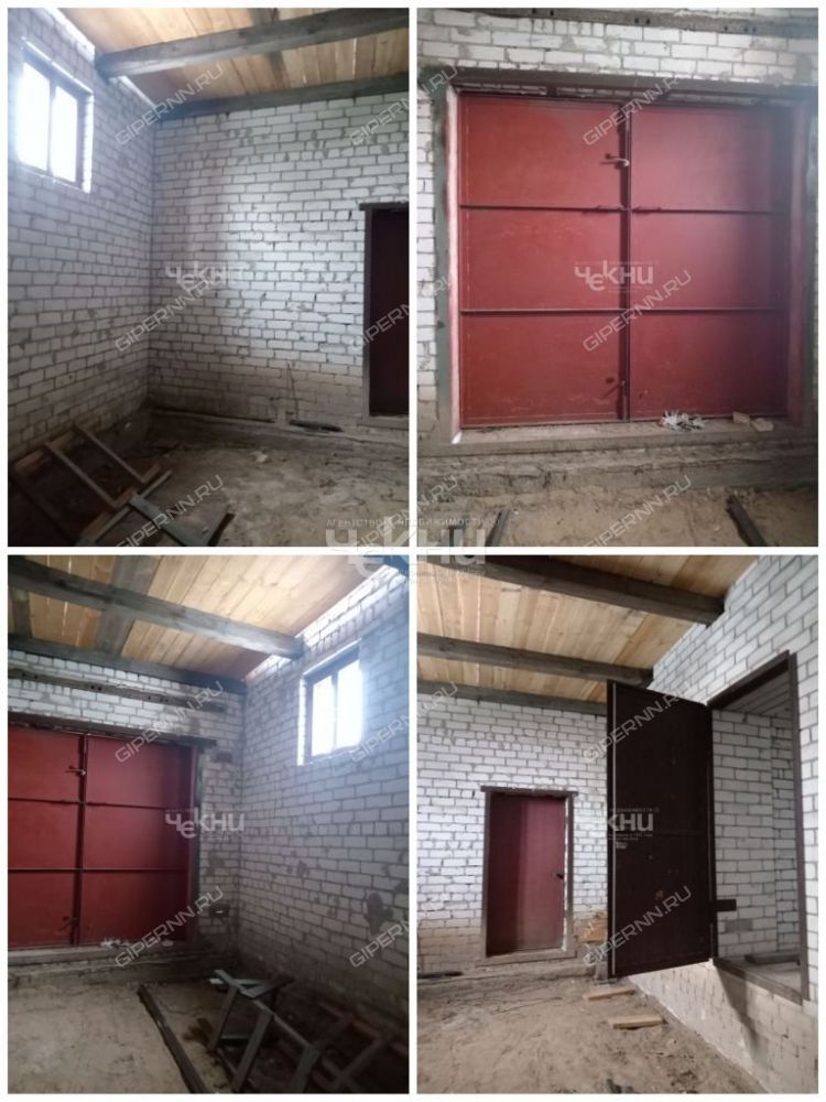 К дому пристроен кирпичный гараж, фундамент ленточный. Гараж на два машиноместа, ворота 2.2 х 2.2, из него вход в дом и выход в огород.