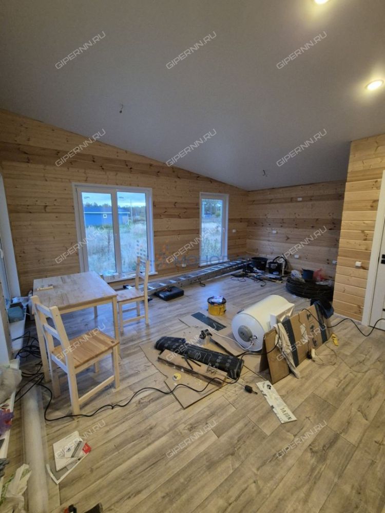 Дом построен по каркасной технологии, очень теплый и светлый благодаря витражному остеклению. В доме две изолированные спальные комнаты и просторная кухня-гостинная. Дом полностью готов к проживанию, осталось только установить мебель и технику по своему вкусу. Внутри дома полность отделка деревом, что позволяет изменить интерьер на свое усмотрение. В доме скважина с питьевой водой и септик. Также у дома есть большая терасса для отдыха. Санузел совмещенный с душевой кабиной (на полу плитка).