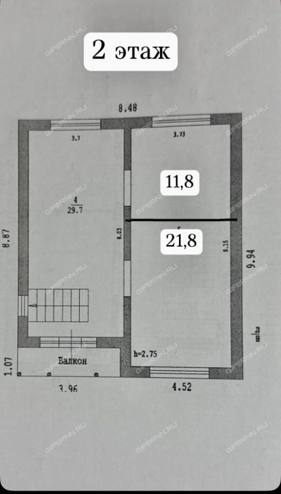 2 этаж 2 изолированные комнаты 11,8 кв м и 21,8 кв м холл 31,4 кв м
