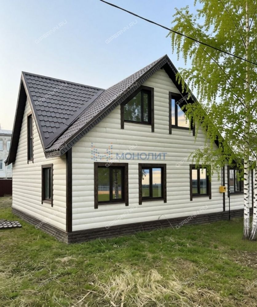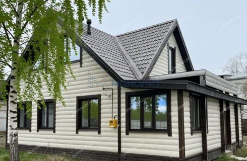 Конструктив дома - cвaйно-pоствepковый фундамeнт, мaтериaл cтeн - aрбалит. Отделкa - окрашенный блoкxауc (не пластиковый сайдинг). Материал кровли - металлочерепица. Внутренняя отделка - гипсокартон и ГВЛ.