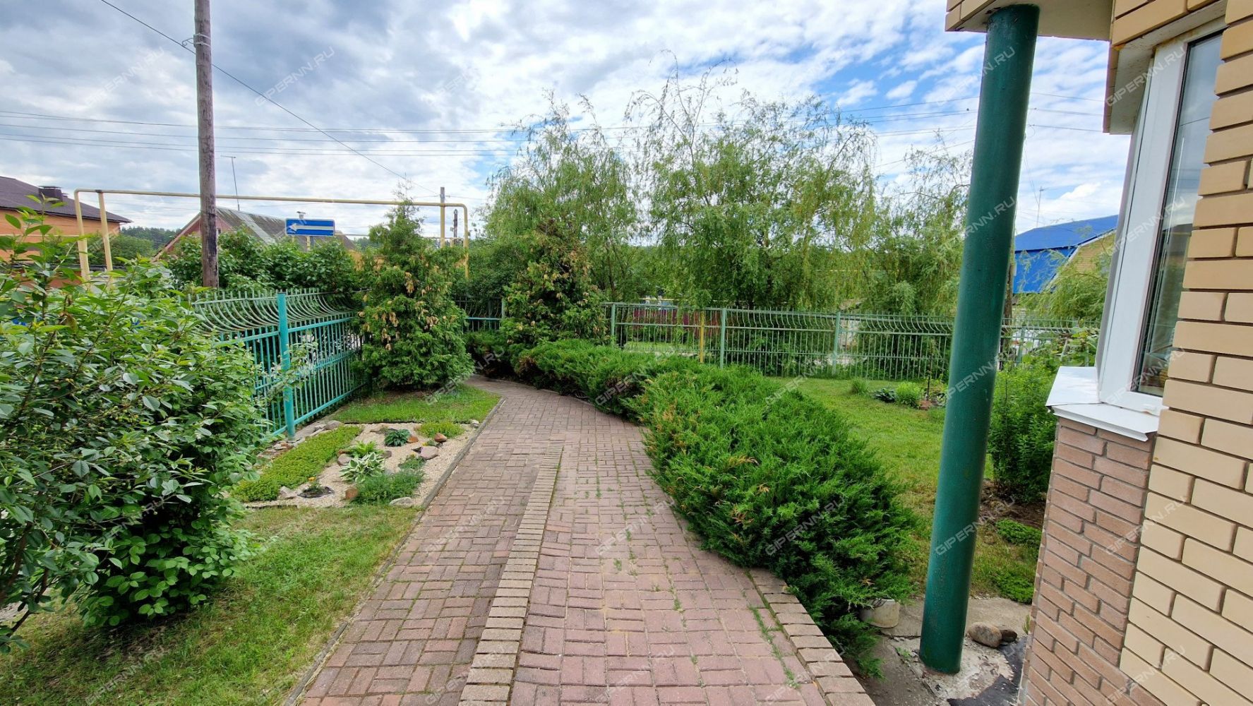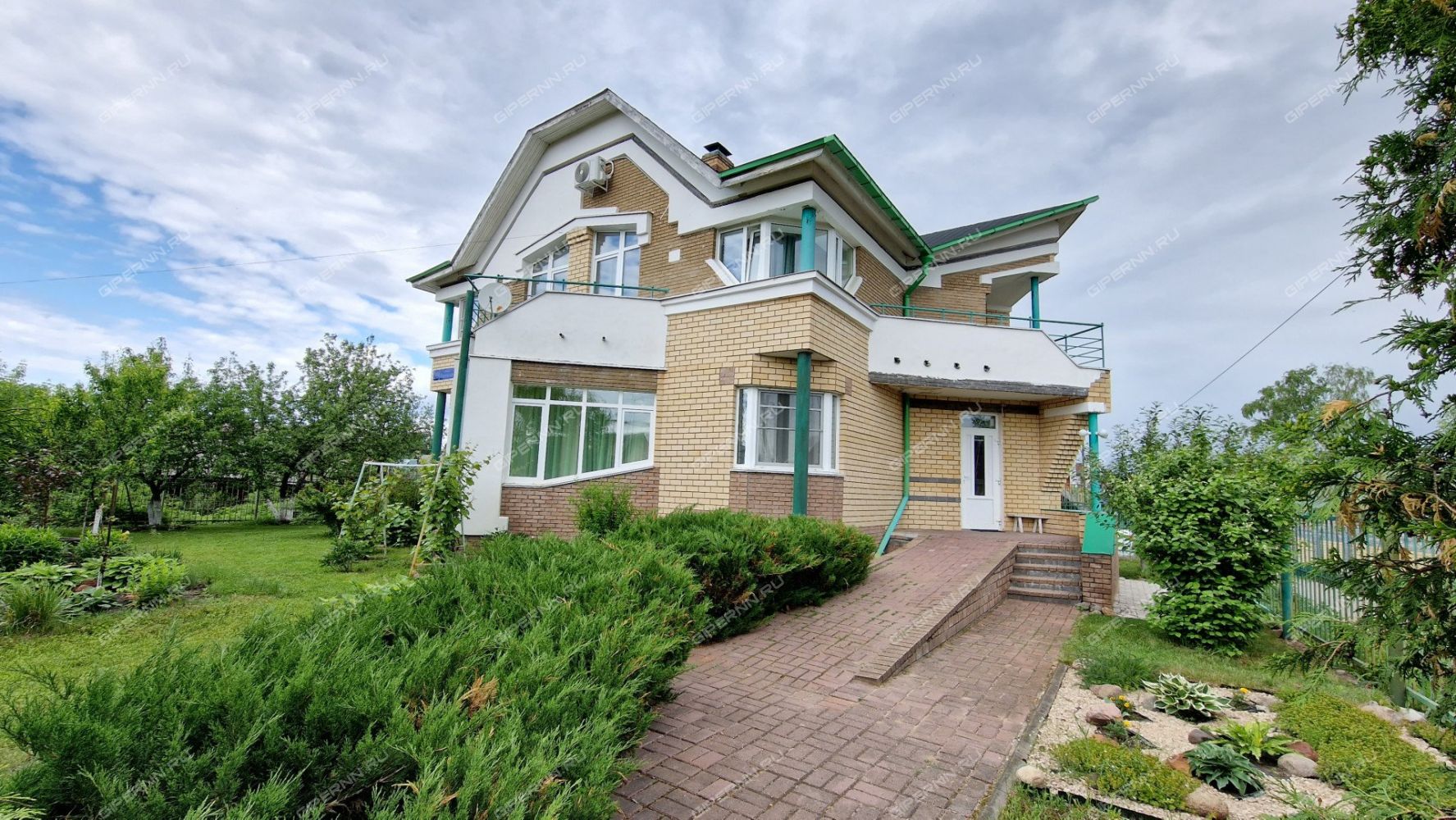 площадь земельного участка 8.13 сот. Категория земли ИЖС. На Участке газон, плодовые деревья, кустарники, туи, можжевельник, жасмин, груши, вишня, смородина. От входной двери до калитки пандус. У гаража оборудована брусчаткой стоянка на две машины.