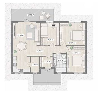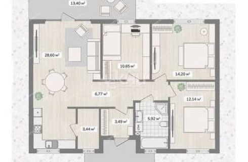 | Площадь | 105 / 63,5 / 13 |