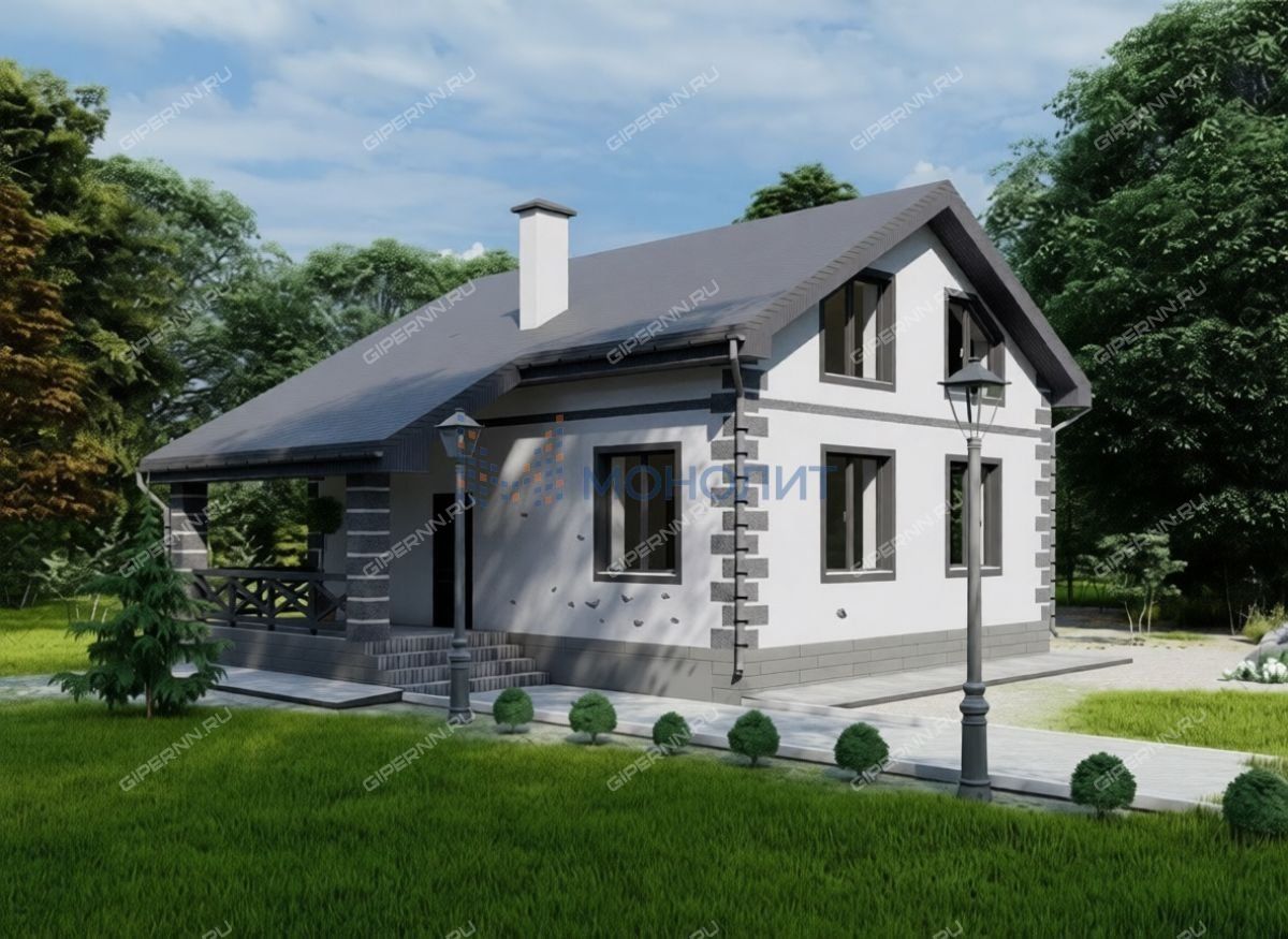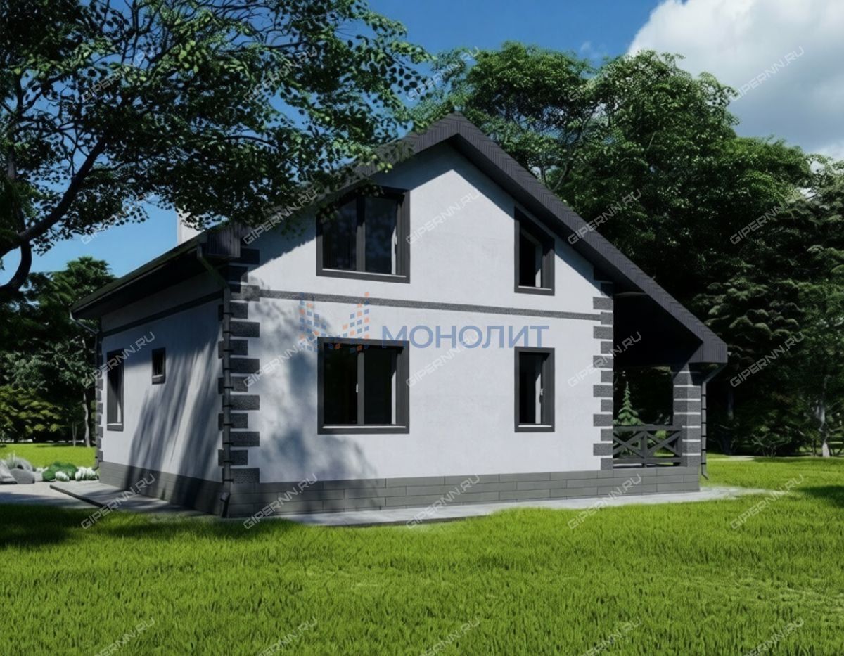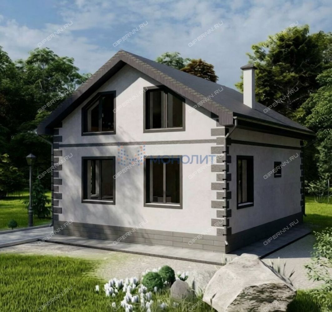 Материал стен газосиликатный блок толщиной 300мм, с послойным армированием; внутренняя отделка стен - механизированная штукатурка; фасад - утепление 100мм, декоративная штукатурка, кровля четырёхскатная - покрыта мягкой, двухслойной черепицей, утепление потолка 200 мм (минеральная вата), деревянные конструкции кровли камерной сушки, обработаны противопожарным составом, гидро/ветро/паро защита; окна - пластиковые.