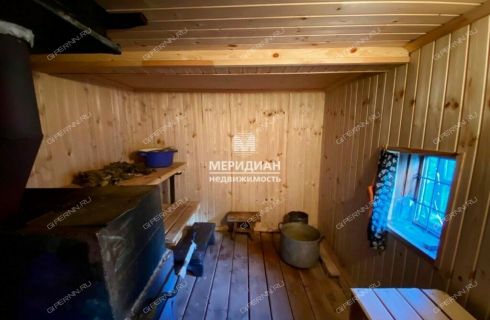 Также на участке есть деревянная баня с дровяным сараем, теплица и большой металлический каркас для теплицы.