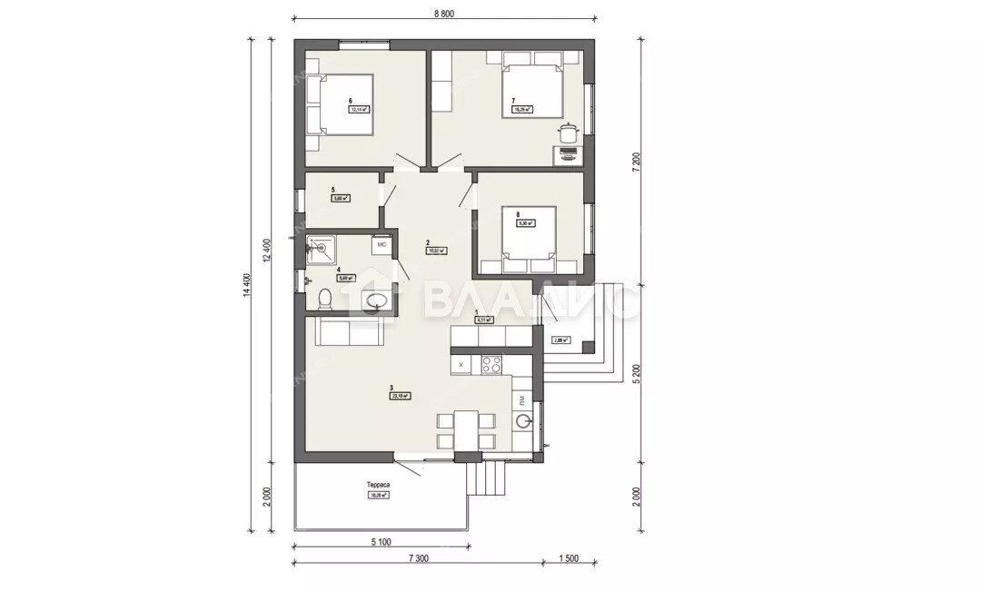 | Площадь | 94 / 60 / 15 |