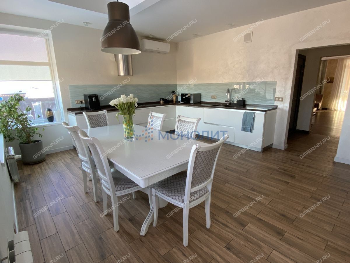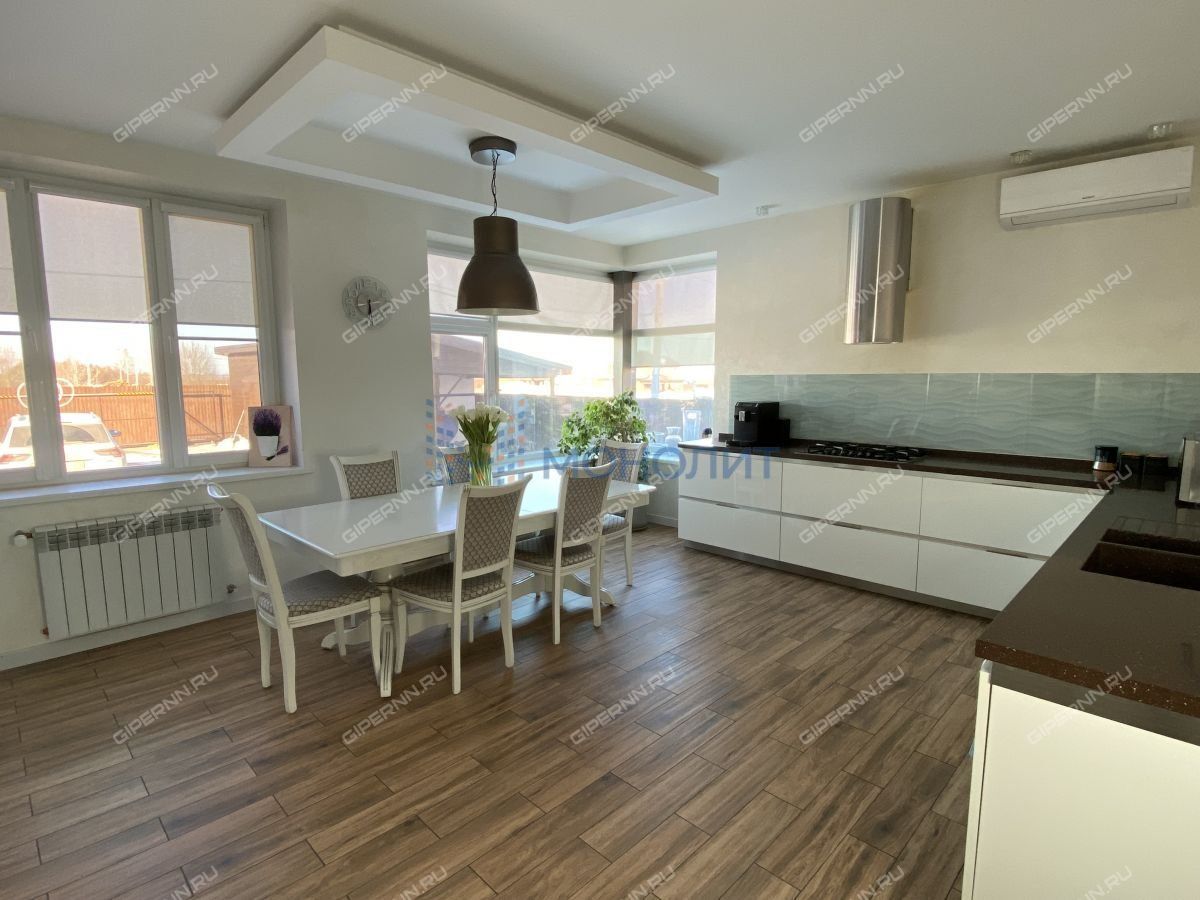 В продаже Дом 354 кв.м. и земельный участок 17,5 соток в селе Большая Ельня, ул. Новая (Кстовский район). Собственник строил дом для себя, качественно и без экономии на материалах. Выполнен дизайнерский ремонт, меблирован дом практично и со вкусом, техника высокого класса.В доме 3 уровня, цоколь (сухой, полноценный этаж), 1 этаж, 2 этаж. Застекленная веранда с печью-барбекю. Цоколь : полностью отремонтирован (плитка на полу, натяжные потолки), система принудительного притока воздуха в дом с подогревом. Туалет, котельная, постирочная-сушильная, 2 большие комнаты, места для хранения. Вся сантехника Германия. 1 этаж: кухня 24,5 кв.м., гостинная 36,5 кв.м., кабинет 17 кв.м., санузел 5 кв.м. Потолки 2.9 м. Лестница жб монолит+ламинат, перила кованные.2 этаж: 3 спальни (30, 24, 17 кв.м), гардеробная 6 кв.м, 2 санузла (7.6, 5 кв.м). Потолки 2,9 м.Дом на жб плите 50смВсе перекрытия жб монолит и жб панели.Монолитный каркас и газосиликат 600. Стены 40 см, утеплитель 10 см.4 контура тёплых водяных полов2 котла. Baxi slim и резервный дровяной. Бойлер 200л baxiМощный стабилизатор входного напряжения на весь дом.Резервный дизель генератор 3 фазный , 6.5 кВА ИталияСистема видеонаблюдения. Охранная сигнализация Скважина 32 метра, частотный преобразователь.Фильтр система до уровня питьевой водыУчасток ровный, широкий, правильной прямоугольной формы. По всему участку качественный многолетний газон. Ухоженные плодоносящие яблони, вишни, груши, слива, малина, клубника. Декоративные сосны, ели.Забор со всех сторон. Удачное расположение вдали от центральной дороги.На земельном участке расположены: гараж-мастерская для мототехники, баня рубленная 90 кв.м. с гостевой комнатой, дом для собаки, детская площадка.Баня: рубленная (30-35 см) двухэтажная, отапливаемая. 1 этаж - 50 кв.м. (гостевая комната 20 кв.м., парилка 18 кв.м, туалет) с теплым водяным полом. 2 этаж - 40 кв.м. (комната отдыха) Большая Ельня одно из популярных мест для загородного проживания в Нижегородской области.15 мин до микрорайона Верхние Печеры и 30 мин до центра Нижнего Новгорода. Замечательная альтернатива квартиры для большой и дружной семьи. Один взрослый собственник. Буда рада показать Вам этот прекрасный объект в удобное для Вас время! `