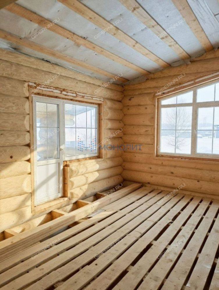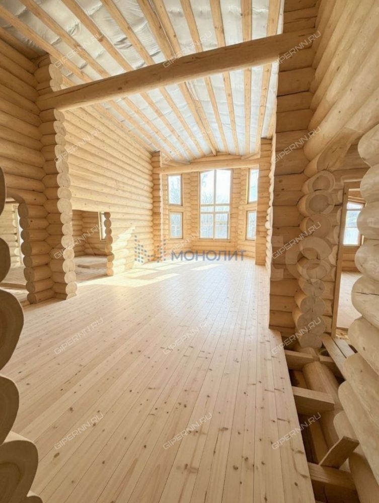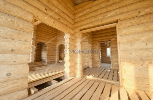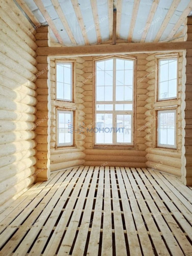 150 м² жилой площади + 40 м² просторная веранда. Потолок в зале 5,5 метров — эффект второго света и ощущение свободы. Дом полностью отшлифован изнутри — подчеркнута текстура и красота натурального дерева. Монолитный погреб 2×2 м в котельной.