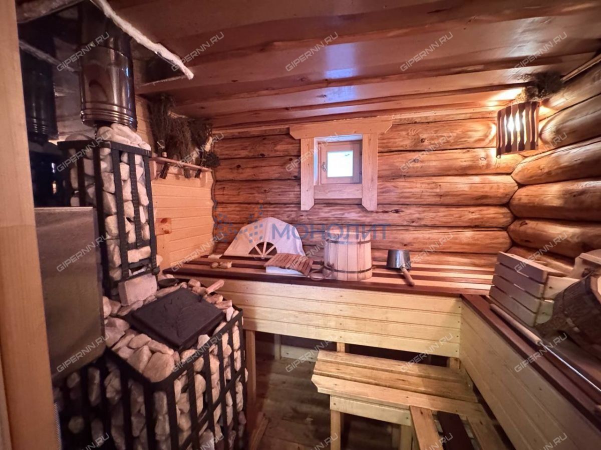 Баня из рубленого бревна, сруб собран на мох, мощная чугунная печь Гефест ЗК-25, которая позволяет добиться как режима русской бани, так и сауны.