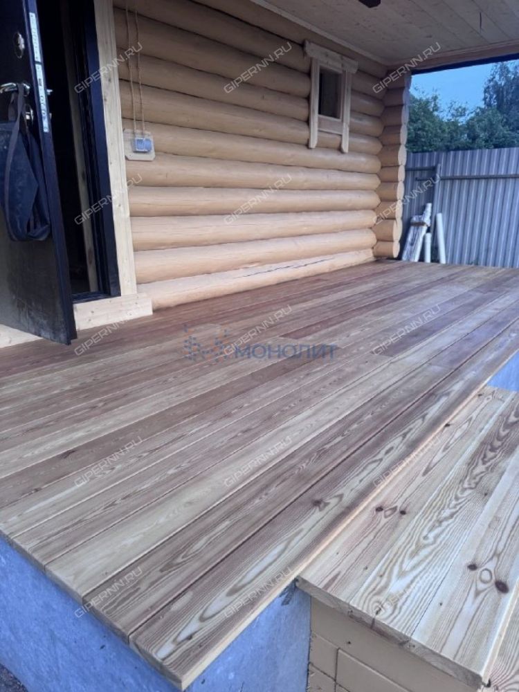 Полы террасы дома и бани сделаны из лиственницы- вечные (см. последние фото с летнего сезона)