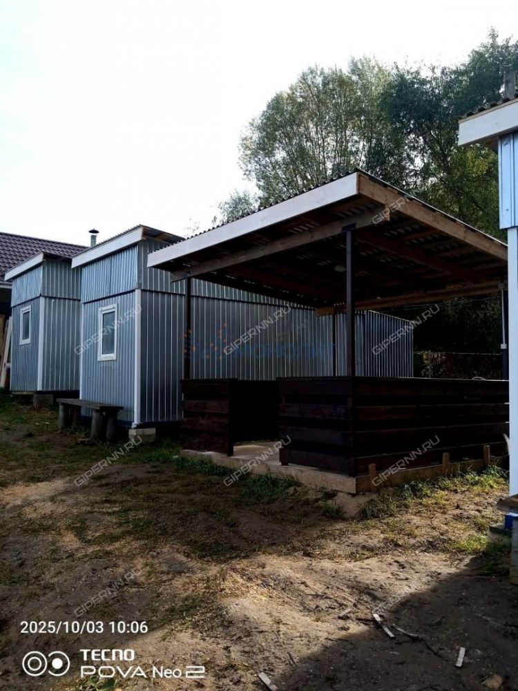 Вместе с домом продается прилегающая территория, площадью- 3 сотки (в собственности) . На ней расположены беседка и 3 утепленные вагончика. В них проведено электричество, есть санузлы, горячая и холодная вода. Вагончики пользуются спросом у туристов, рыбаков.