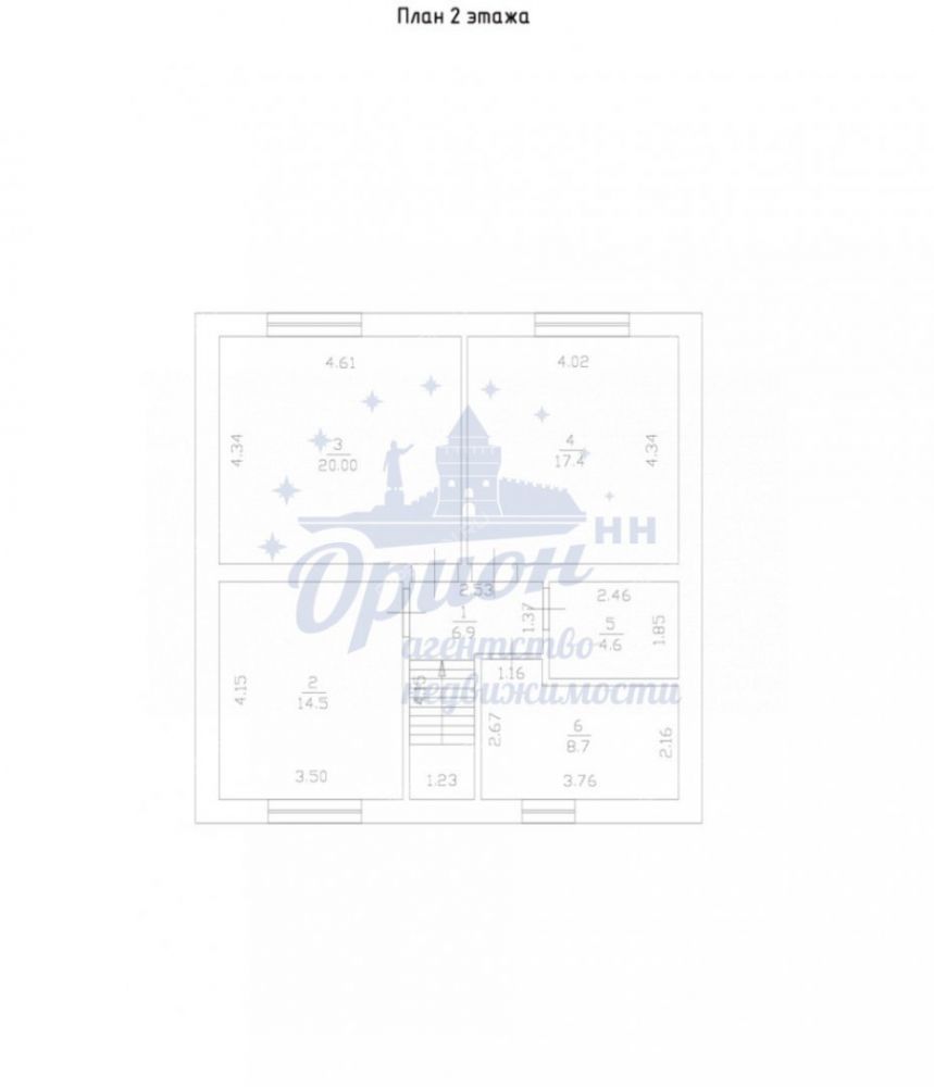 На втором этаже располагаются три изолированных и просторных комнаты( 14,5+ 20,0+ 17,4 кв. м), коридор 6,9 кв. м, просторный санузел 8,9 кв. м и подсобное помещение 4,6 кв. м.