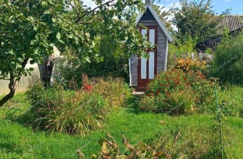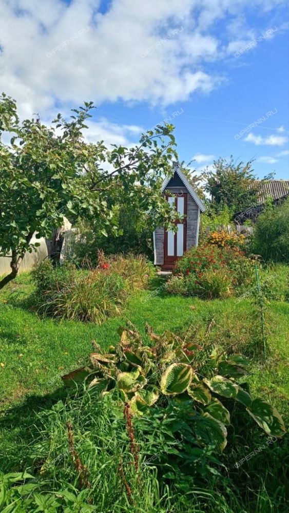 На участке баня, летний туалет. Большой, ровный участок, есть теплица, все посадки, деревья, кустарники. В 150 м от дома есть еще участок 7 сот под картошку.
