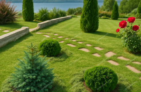 • Ландшафт выполнен профессионально с учетом - минимум ухода, максимум аккуратности