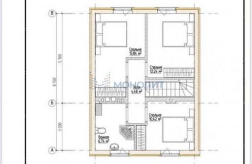 Первый этаж включает тамбур, санузел, котельную и просторную кухню-гостиную, а на втором этаже расположены три спальни, ванная комната и холл.
