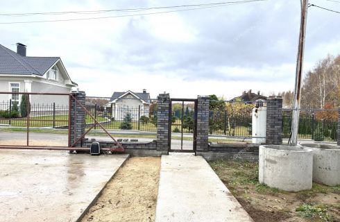 Отличный прямой, ровный участок, откатные ворота и калитка, сейчас устанавливаем забор
