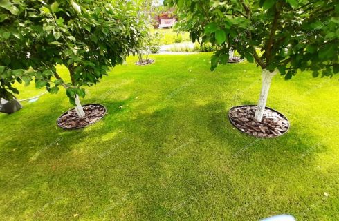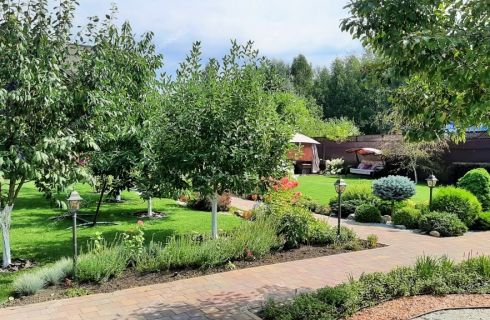 Гармоничное и ухоженное домовладение. Все новое. Дом небольшой, очень уютный и эргономичный, площадь 114м2, расположен на благоустроенном идеальном ровном прямоугольном участке 8 соток c лaндшафтным дизaйном и cиcтемой автомaтическoго поливa. На участке газон, декоративные растения, фруктово-ягодный сад (яблони, груши, черешня, малина, смородина, крыжовник) и модульный мини огород, выделенная зона отдыха беседка, садовые качели (мангал, барбекю), бассейна, парковки. Участок кроме забора окружен зеленой изгородью и насаждениями, что добавляет эстетики безопасному периметру и гармонии пространству. Доступ на территорию через автоматические ворота или через калитку.
