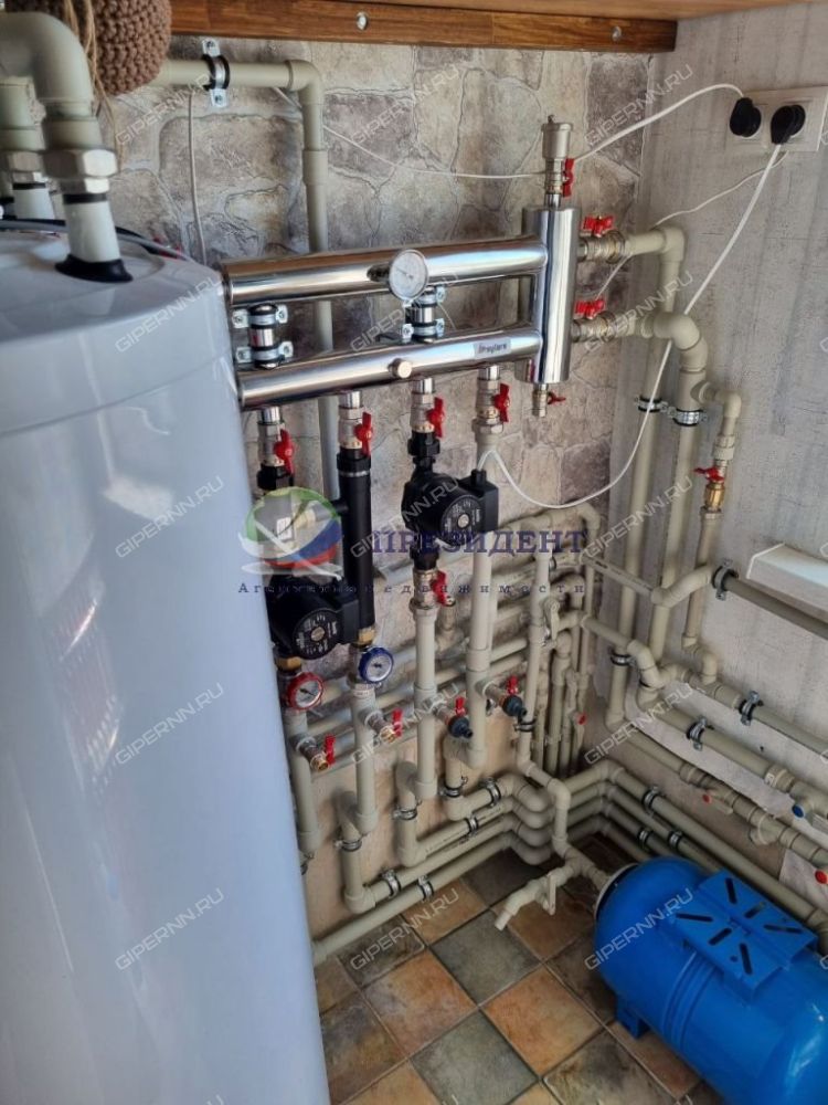 - котельная с системой газового водяного отопления, с косвенным водонагревателем Aquastic объёмом 200л, с системой очистки и умягчения воды, с электрощитом.