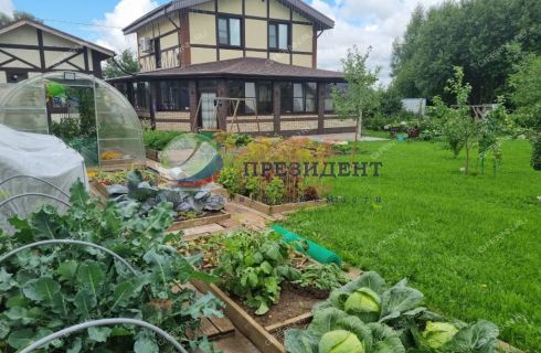 Весь участок разработан и ухожен: газонная трава, декоративные кусты, разнообразные лиственные и хвойные деревья, разнокультурный плодоносящий сад, много различных ягодных кустов, грядки и две теплицы.
