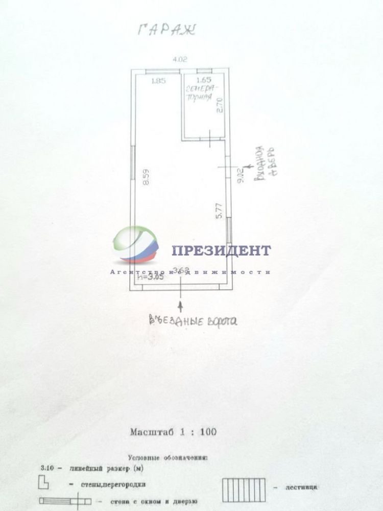 Гараж 3,6х8,6м с высотой внутри 3м с антресольным хранением; с комнаткой, где можно установить генератор на случай отключения эл/энергии, схема электроподключения проработана; ворота секционные на электроприводе премиум класса Horman; внутри установлен отдельный электрощиток с электроразводкой. Построен на ленточном фундаменте, стены из газобетонных блоков, кровля - гибкая черепица "Технониколь». У гаража на улице подведена холодная вода для летней мойки авто и заасфальтирована площадка-парковка на два авто.