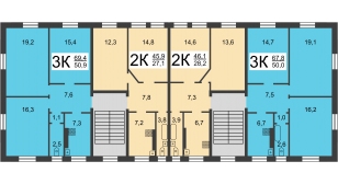 | Площадь квартиры | 69,4 / 45 / 8 |