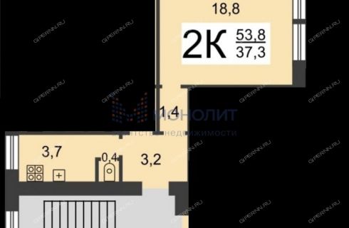 | Площадь квартиры | 53 / 28 / 3,7 |