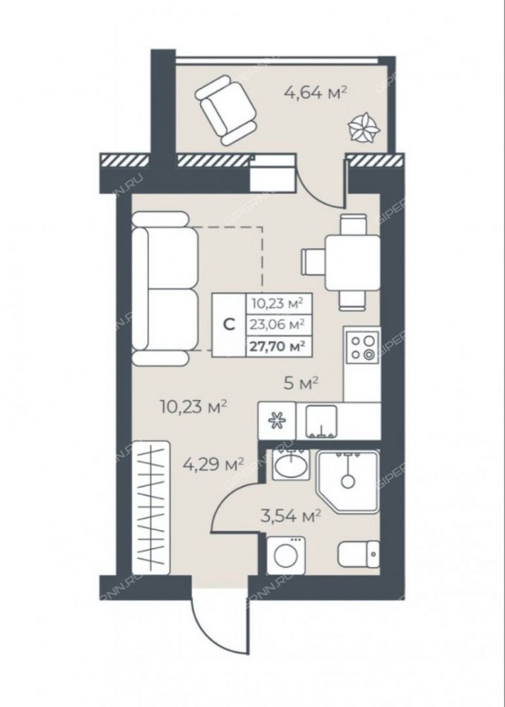 | Площадь | 27,7 / 10,23 / 5 |