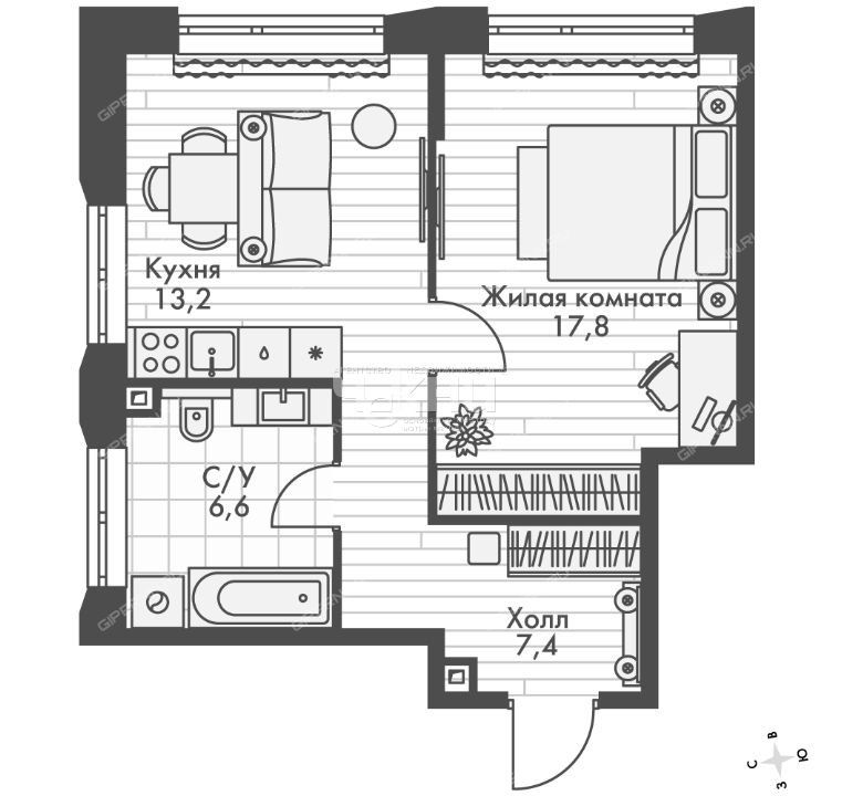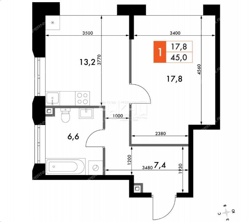 | Комнат | 1 комната |