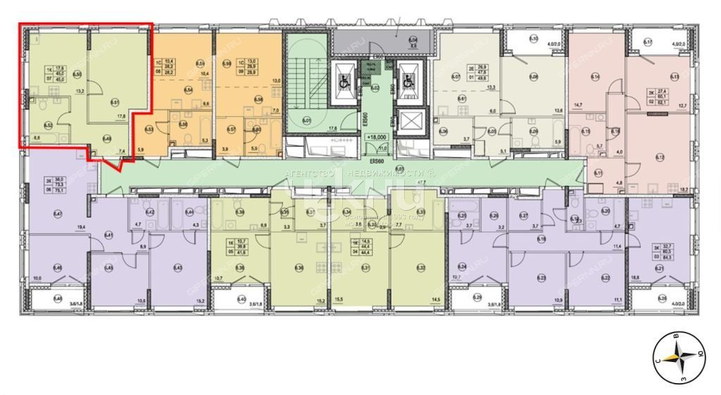 | Площадь | 45 / 17,8 / 13,2 |