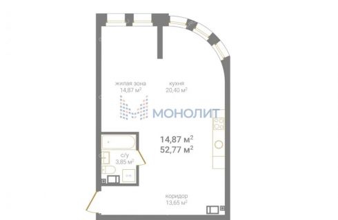 | Площадь | 52,77 / 14,87 / 20,4 |