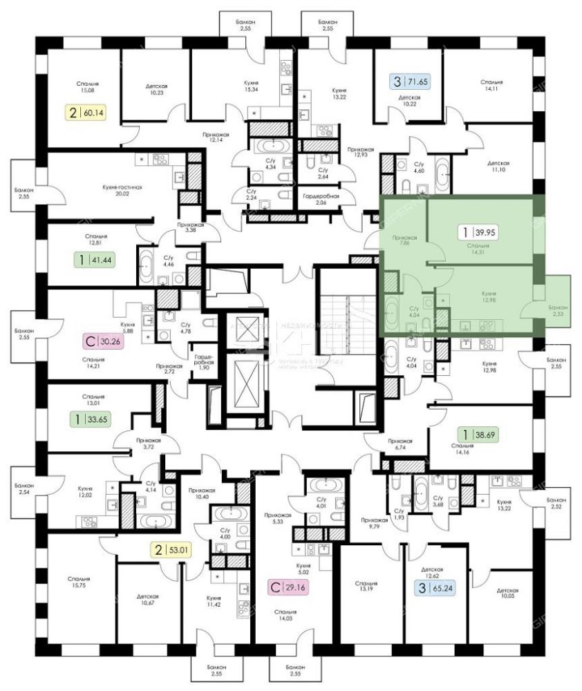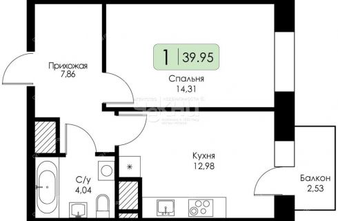 | Площадь | 39,95 / 14,31 / 12,98 |