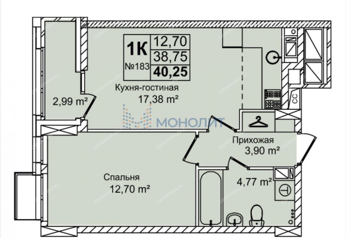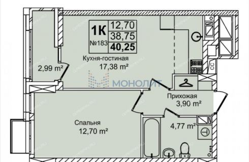В продаже 1-комнатная квартира в ЖК Авиатор в Сормовском р-не. Этаж 3/16. Площадь квартиры 40.25м.кв. Кухня-гостиная 17.38 м, спальня 12.7 м. С/у совмещенный. Отделка черновая. Благоустройство прилегающей территории включает в себя организацию детских игровых и спортивных площадок, гостевой автостоянки, а также озеленение. В шаговой доступности находятся школы, детский сад, медицинские учреждения, продуктовые магазины и остановки общественного транспорта. Ввод объекта в эксплуатацию запланирован на 4 квартал 2026 года. Агентство недвижимости «Монолит» профессионально помогает с оформлением ипотеки: сбор и подача всех необходимых документов, оперативное рассмотрение заявки, помощь в получении сниженной процентной ставки, осуществляем юридическое сопровождение сделки. Оказываем весь комплекс услуг по покупке квартиры в режиме одного окна (страховка, оценка, выездная регистрация, военная ипотека, маткапитал, подбор новостроек). Номер объекта: #41/1824294/11523