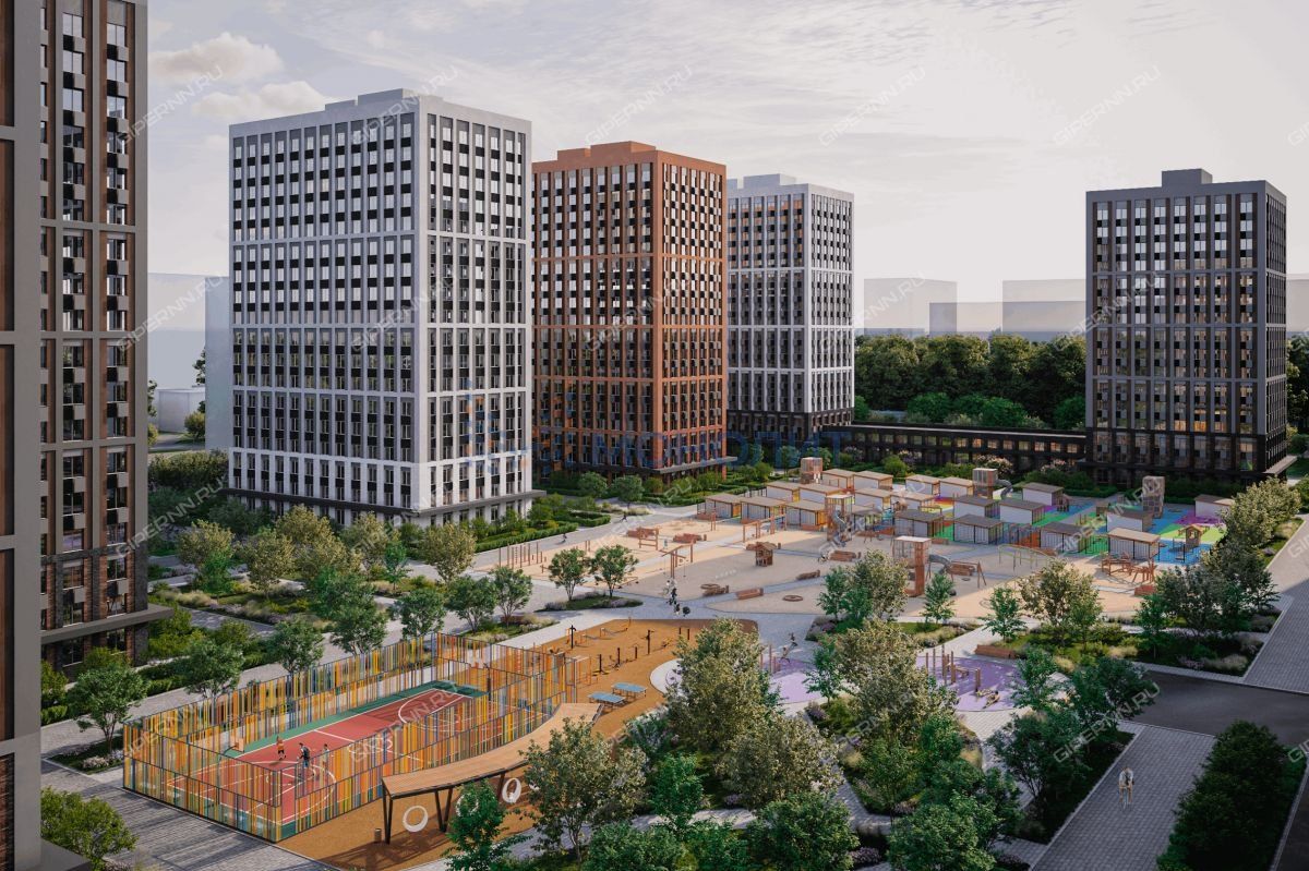 Проект состоит из 6 жилых домов разной этажности. Ценители живописных видов по достоинству оценят квартиры на высоких этажах, где открывается вид на озеро или парк. А концепция «дворы без машин» подарит тишину и спокойствие тем, кто выберет квартиры на первых этажах. Проектом предусмотрены наземный и подземный паркинги, а также строительство детского сада на 240 мест, который будет расположен в глубине квартала вдали от оживленной улицы.