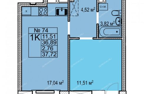 | Площадь | 37,72 / 11,51 / 17,04 |