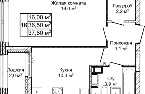 Площадь37,8 / 16 / 10,3