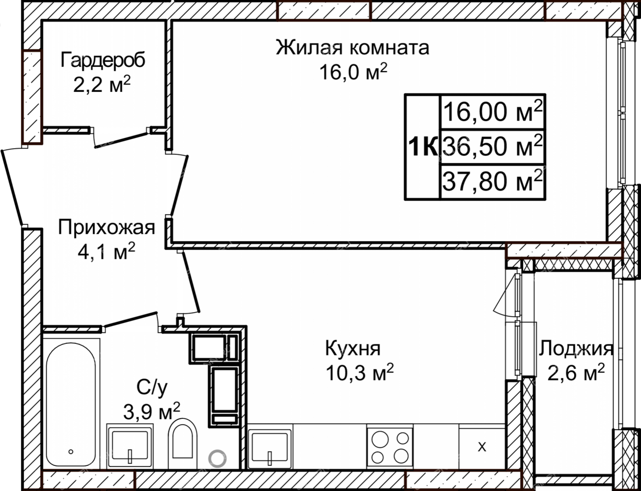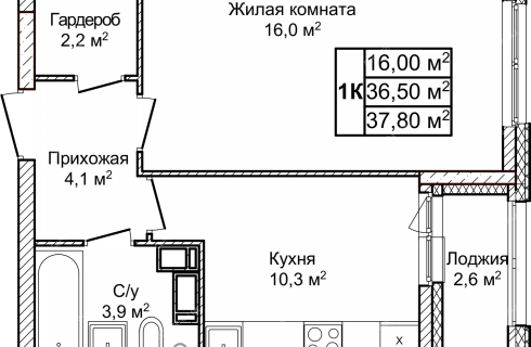 | Площадь | 37,8 / 16 / 10,3 |