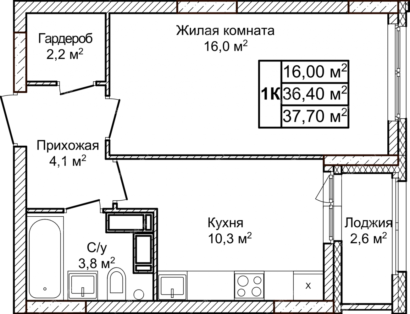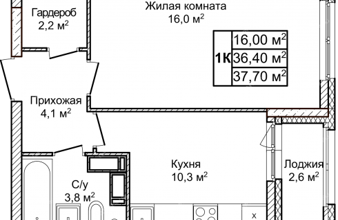 Площадь37,7 / 16 / 10,3